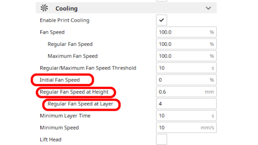Cura is known for its super user-friendly and easy to use interface that comes with. extensive. customization options. Just like in PrusaSlicer, you would find settings to adjust the fan speed according to the material you are printing with.