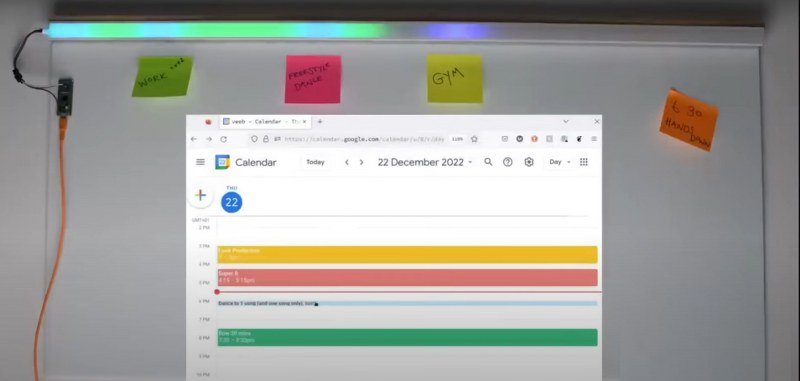 All you need are a Raspberry Pi Pico W and a colorful 5V addressable LED strip. As you tackle your tasks, this smart LED bar keeps you updated on how much of the workday has already passed.